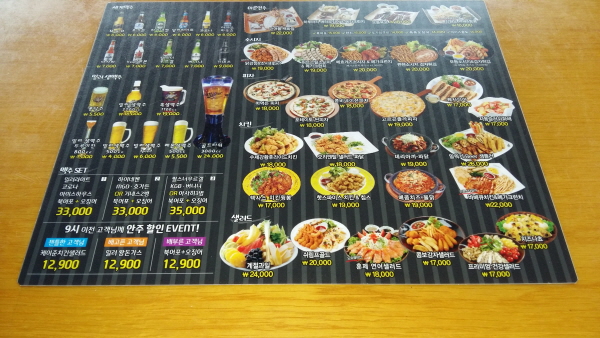 후라이드치킨, 피자, 훈제연어샐러드 |