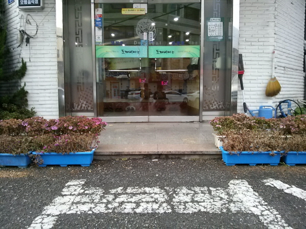 주출입구 계단 1개 현관턱 1개 일반주차 6대 좌식테이블 15개 일반화장실 입구 턱 3개 |